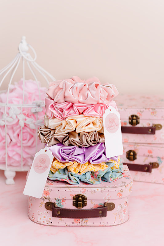 Aurora Stretch Satin Scrunchie in Pink