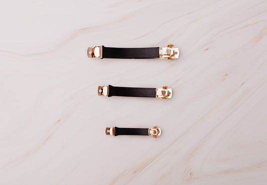 Fhina Two-Toned Barrette Bow in Black and Ivory Satin