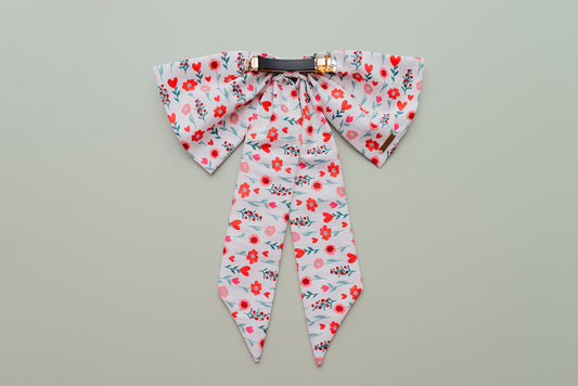 Flora Cotton Fabric Hair Bow Barrette in Red Hearts and Flowers