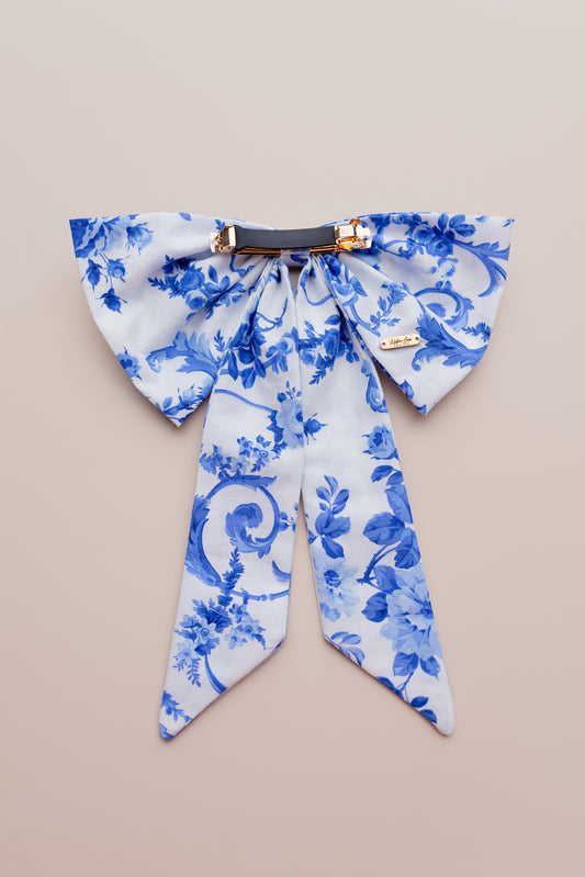 Isla Cotton Fabric Hair Bow Barrette in Blue Florals