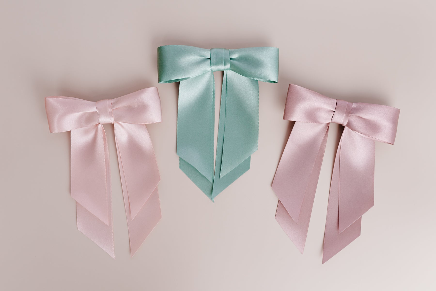 Introducing our Double Tail Satin Hair Bow Barrette, perfect for your little ones in Blush, Sage, and Mauve. With its double tails and satin material, it adds a touch of elegance to any outfit! Available in multiple barrette sizes. Upgrade their hair game with this adorable hair bow!